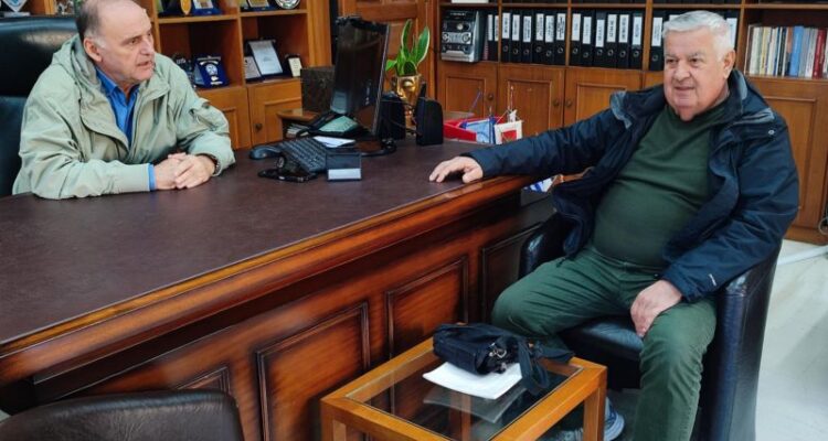 Τον Πρόεδρο του Συνδέσμου Σαμαριναίων Κόρης νομού Τρικάλων Νίκο Στεφίκο, δέχθηκε σήμερα στο γραφείο του ο εκτελών χρέη Δημάρχου Αντιδήμαρχος Ανταποδοτικών υπηρεσιών Τάκης Παζαϊτης, για θέματα που αφορούν το χωριό.
