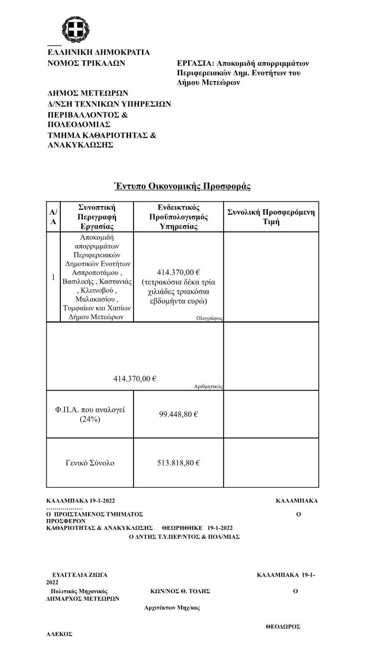 Να μας πουν ποιος συνέταξε αυτό το διαγωνισμό και τι έλαβε υπ’ όψιν εκτός από τις απαιτήσεις του εργολάβου για αύξηση 43.710 €.