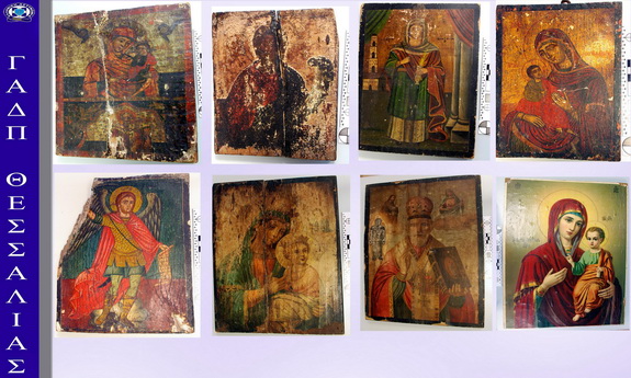 Στην κατοχή των συλληφθέντων βρέθηκαν και κατασχέθηκαν εννέα (9) συνολικά εκκλησιαστικές εικόνες ιδιαίτερα μεγάλης χρηματικής και χρονολογικής αξίας. Από αυτές, οι πέντε (5) υπάγονται στο νόμο περί προστασίας αρχαιοτήτων, σύμφωνα με εκτίμηση της Εφορίας Βυζαντινών Αρχαιοτήτων Λάρισας και χρονολογούνται στον 18ο και 19ο αιώνα. Οι υπόλοιπες τρεις (3) χρονολογούνται στα τέλη του 19ου και 20ου αιώνα και χρήζουν περαιτέρω διερεύνησης από την Εφορία Βυζαντινών Αρχαιοτήτων για να προσδιοριστεί το έτος κατασκευής τους, ενώ άλλη μία (1) είναι σύγχρονης κατασκευής.