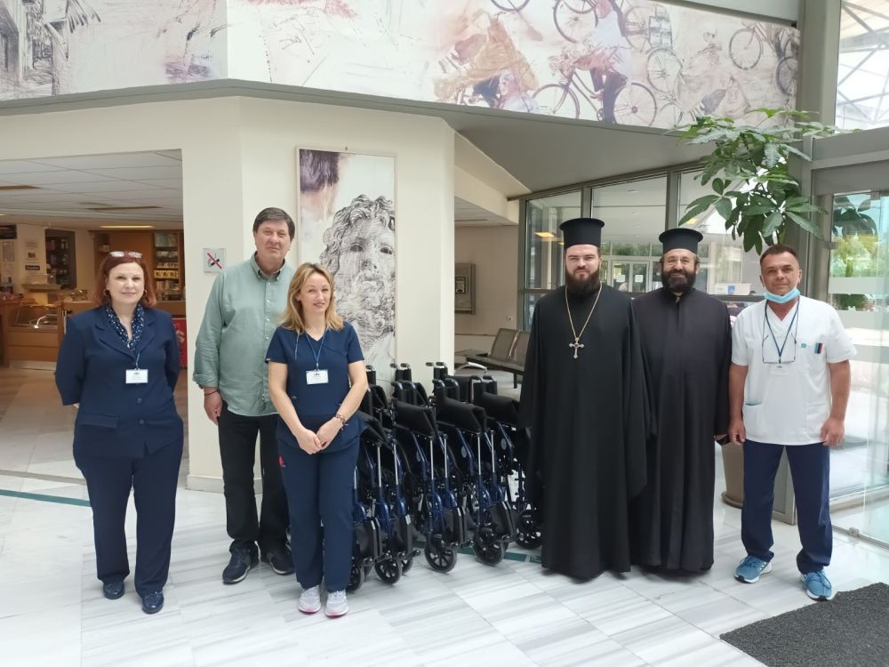 Εκπροσώπου του Σεβασμιωτάτου Μητροπολίτου, ο Πρωτοσύγκελλος της Ιεράς Μητροπόλεως Αρχιμ. Αλέξιος Κανίνας και ο εντεταλμένος για τα ειδικά ποιμαντικά θέματα στο χώρο του Νοσοκομείου π. Εφραίμ Γιαννάκος, παρέδωσαν σήμερα Παρασκευή 16 Ιουνίου 2023 στον Διοικητή του Γενικού Νοσοκομείου τα ειδικά αμαξίδια προς χρήσιν των ασθενών, μεταφέροντας παράλληλα τις πατρικές Ευχές του Σεβασμιωτάτου Μητροπολίτου για ενίσχυση στο πολυσχιδές έργο που επιτελείται στο Νοσοκομείο.