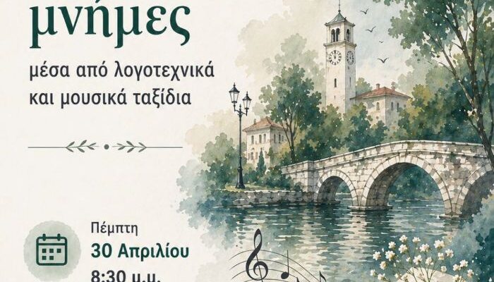 Το 4ο Πειραματικό ΓΕΛ Τρικάλων σας προσκαλεί να παρακολουθήσετε τη μουσικολογοτεχνική εκδήλωση με τίτλο «Τρικαλινές Μνήμες μέσα από λογοτεχνικά και μουσικά ταξίδια» στις 30 Απριλίου 2026 και ώρα 08.30μ.μ. στην αίθουσα πολιτιστικών εκδηλώσεων του Μουσείου Τσιτσάνη.