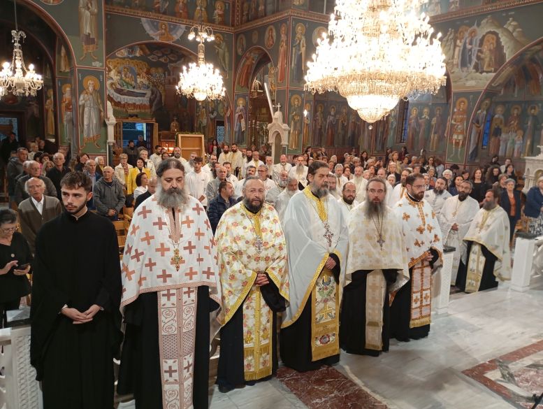 Στη συνέχεια τελέστηκε Μέγας Πανηγυρικός Δισαρχιερατικός Εσπερινός μετ’ αρτοκλασίας και Θείου Κηρύγματος, χοροστατούντος του Σεβασμιωτάτου Μητροπολίτου Γέροντος Καισαρείας κ. Θεοφυλάκτου και συγχοροστατούντος του Σεβασμιωτάτου Μητροπολίτου Τρίκκης, Γαρδικίου και Πύλης κ. Χρυσοστόμου.
