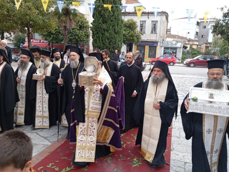 Με κάθε επισημότητα και θρησκευτική λαμπρότητα, πραγματοποιήθηκε το απόγευμα του Σαββάτου έξω από τον Ιερό Μητροπολιτικό Ναό του Αγίου Νικολάου, η υποδοχή των Ιερών Λειψάνων των εν Τρίκκη Αγίων, του Αγίου Βησσαρίωνος, του Αγίου Οικουμενίου Τρίκκης, του Αγίου Εφραίμ Τρίκκης, του Αγίου Αρσενίου Επισκόπου Ελασσώνος και του Αγίου Ιερέως Δημητρίου Γκαγκαστάθη, από τον Σεβασμιότατο Μητροπολίτη Τρίκκης, Γαρδικίου και Πύλης κ. Χρυσόστομο, με την συμμετοχή του Ιερού Κλήρου, των Αρχών του νομού και της πόλης, εκπροσώπους υπηρεσιών, συλλόγων και σωματείων και τον ευλαβή λαό.
