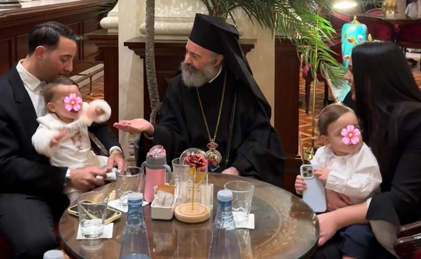 Ο Σεβασμιότατος Αρχιεπίσκοπος ασχολήθηκε αρκετά με τα δύο νεοφώτιστα παιδάκια, δίνοντας τους την πατρική του ευχή και όλοι μαζί φωτογραφήθηκαν χαρούμενοι και ευλογημένοι.