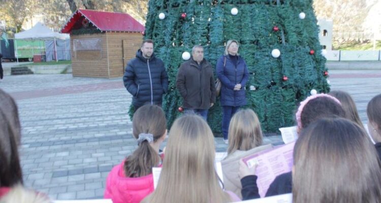 Τα παιδιά τραγούδησαν τα κάλαντα των Χριστουγέννων τοπικά, αλλά και από διάφορες περιοχές της Πατρίδα μας, στον Δήμαρχο και στους συνεργάτες του με την συνοδεία ακορντεόν που έπαιζε ο μουσικός του Σχολείου κ. Γεώργιος Αγγελάκης μπροστά από το Χριστουγεννιάτικο Δένδρο στον χώρο της πλατείας, που την προηγούμενη ημέρα φωταγωγήθηκε μέσα από μια λαμπρή χριστουγεννιάτικη γιορτή.