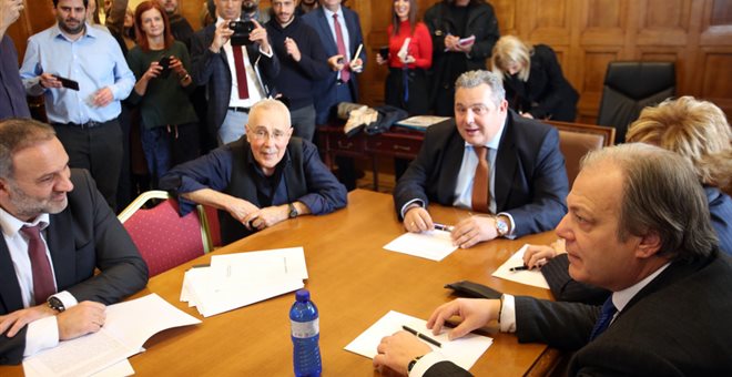 Στο κενό έπεσε η πρόταση Καμμένου να αποσυρθούν από την κυβέρνηση όλοι οι βουλευτές του κόμματός του, την οποία φέρεται να έριξε στο τραπέζι κατά τη διάρκεια της συνεδρίασης της Κοινοβουλευτικής Ομάδας των ΑΝΕΛ.