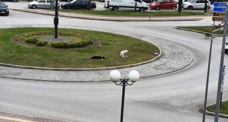Κάτοικοι της περιοχής κάνουν λόγο, πως η αγέλη των αδέσποτων σκυλιών κάθεται αρκετά στο πράσινο κυκλικού κόμβου και ενίοτε γίνονται επιθετικά προς τους περαστικούς με απρόβλεπτες συνέπειες.