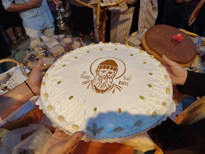 Πανηγυρικός Εσπερινός μετά αρτοκλασίας, τελέστηκε νωρίς το βράδυ της Δευτέρας στο εκκλησάκι της Κοιμήσεως της Θεοτόκου στην Αγία Μονή, στη μνήμη του Αγίου Παϊσίου του Αγιορείτου, ο οποίος είναι σύγχρονος Άγιος της εκκλησίας μας και πέθανε το 1994.