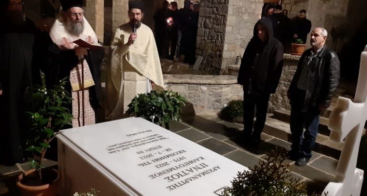 Ακολούθως ο Σεπτός μας Ποιμενάρχης κ. Χρυσόστομος, κλήρος και λαός μετέβησαν στον τάφο του προσφιλούς Καθηγουμένου, που βρίσκεται στον προαύλιο χώρο της μονής, όπου τέλεσαν τρισάγιο για την ανάπαυση της ψυχής του.