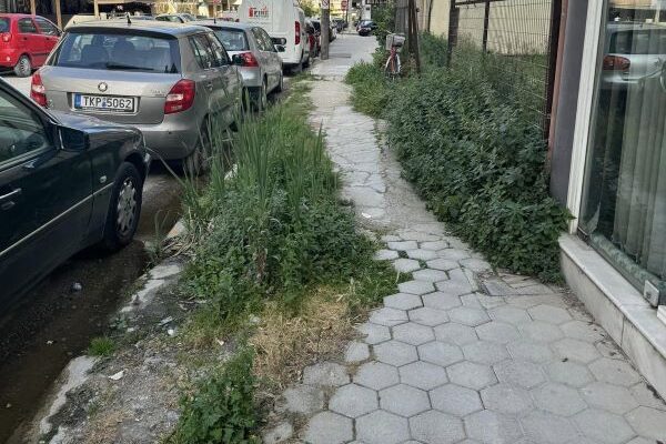 Η συγκεκριμένη φωτογραφία δείχνει άλλο ένα πεζοδρόμιο στα Τρίκαλα, που είναι σε μεγάλο βαθμό καλυμμένο από τα χόρτα, που δυσχεραίνουν την προσπελασιμότητα των πεζών. Και σίγουρα δεν είναι το μοναδικό. Σαν κι αυτό υπάρχουν δεκάδες άλλα πεζοδρόμια σε όλη την πόλη, τις γειτονιές και τις συνοικίες.