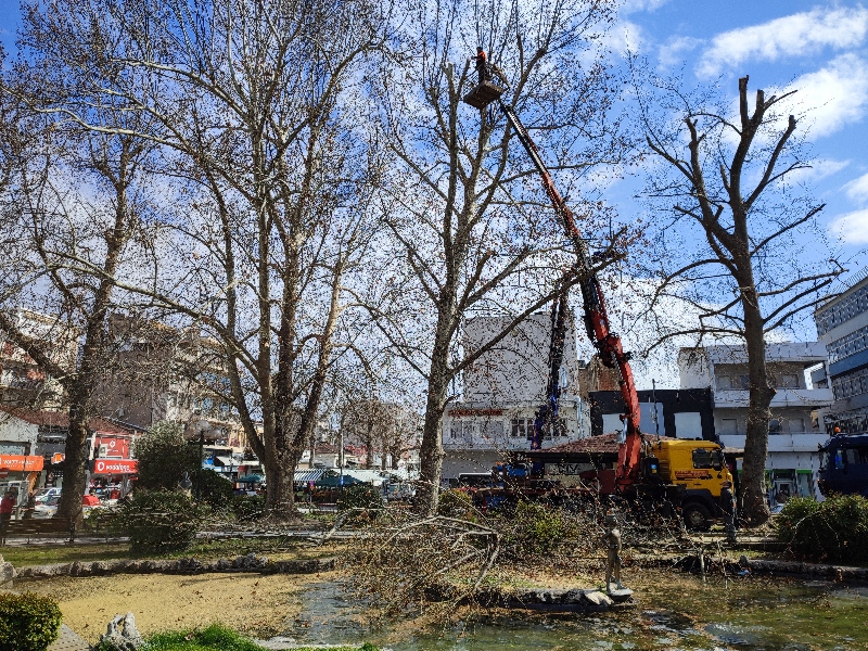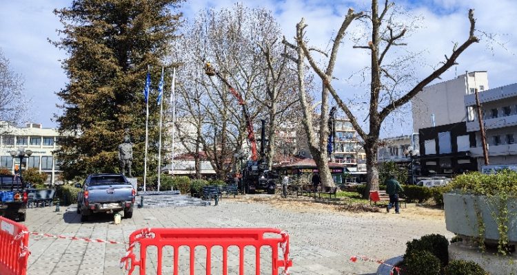 Στο κόψιμο των μεγάλων κλαδιών των δέντρων της κεντρικής πλατείας των Τρικάλων, προχώρησε σήμερα το πρωί η υπηρεσία Πρασίνου του Δήμου Τρικκαίων. Ως ε τούτου, μεγάλο μέρος της κεντρικής πλατείας παρέμεινε αποκλεισμένο σήμερα για τους περαστικούς και τους θαμώνες, λόγω του κινδύνου ατυχήματος από τις εργασίες κλαδέματος.