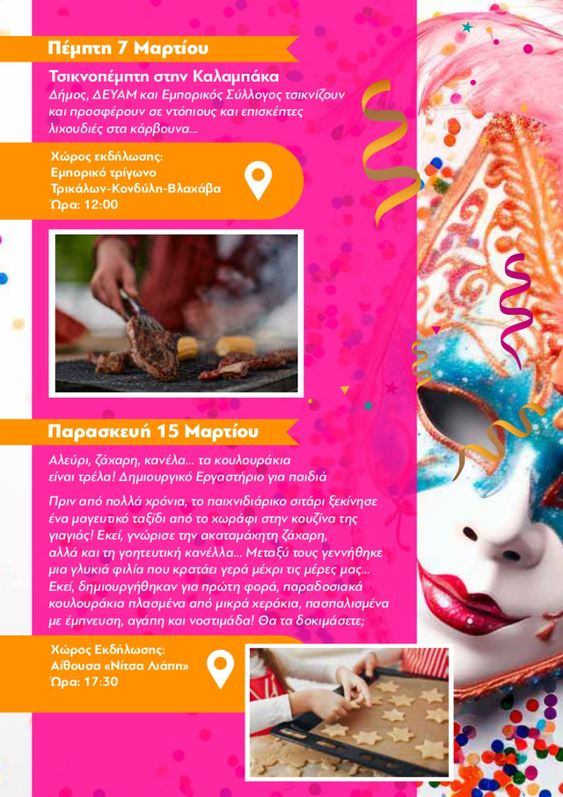 Ο Δήμος Μετεώρων έχει σχεδιάσει και προγραμματίσει πλούσιο πρόγραμμα για τις ημέρες των Απόκρεων τόσο στην πόλη της Καλαμπάκας όσο και στα χωριά του Δήμου.