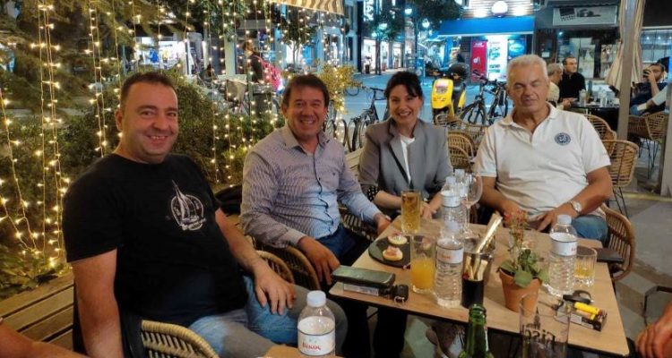 Ο φακός του trikalaIN.gr την εντόπισε στο γνωστό πολιτικό στέκι της πλατείας Δεσποτικού DEAUX AMIS, να τα λέει με τον Πρόεδρο του Συνδέσμου υδραυλικών Τρικάλων Νίκο Βαλομάνδρα και το μέλος της διοίκησης Γιώργο Μίσιο, αλλά και τον εκπαιδευτικό και Προϊστάμενο του ΚΕ.Δ.Α.Σ.Υ Απόστολο Σπαθή.
