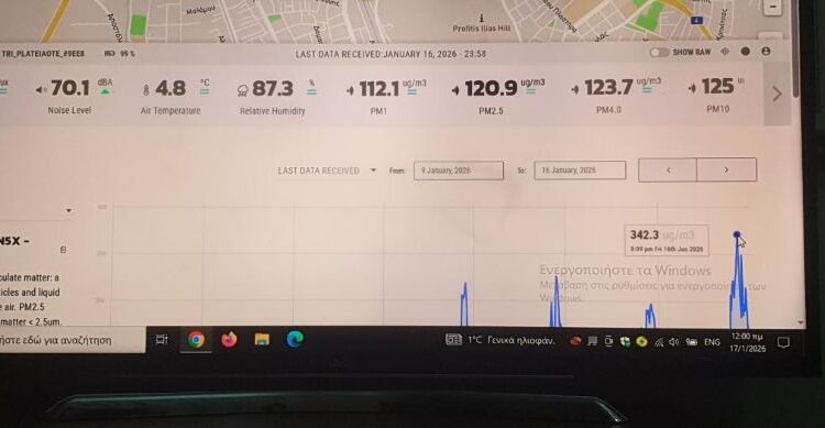 Χθες η μέτρηση από το σταθμό του ΟΤΕ της e-trikala τρομάζει. Δέκα φορές πάνω από τα όρια τις τελευταίες μέρες! Μετά αναρωτιόμαστε γιατί χάνουμε φίλους πρόωρα και γιατί τα αναπνευστικά προβλήματα οδηγούν στα όρια του το νοσοκομείο.