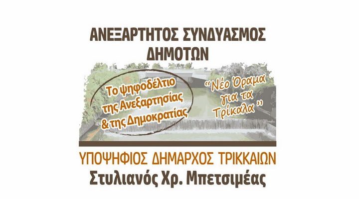 Ως ανεξάρτητο συνδυασμό δημοτών ονομάζει τον συνδυασμό του «Νέο όραμα για τα Τρίκαλα», ο υποψήφιος Δήμαρχος Τρικκαίων και γνωστός καρδιολόγος της πόλης Στέλιος Μπετσιμέας.