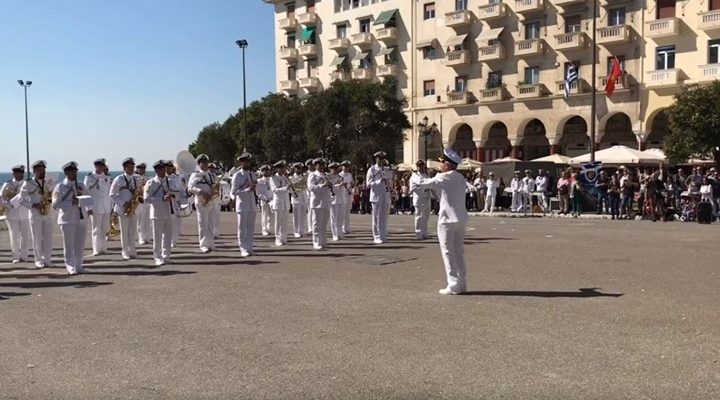 Η μπάντα προχώρησε πεζή από το άγαλμα του Βότση μέχρι την πλατεία Αριστοτέλους στη Θεσσαλονίκη, όπου πρόσφερε ένα εντυπωσιακό θέαμα.