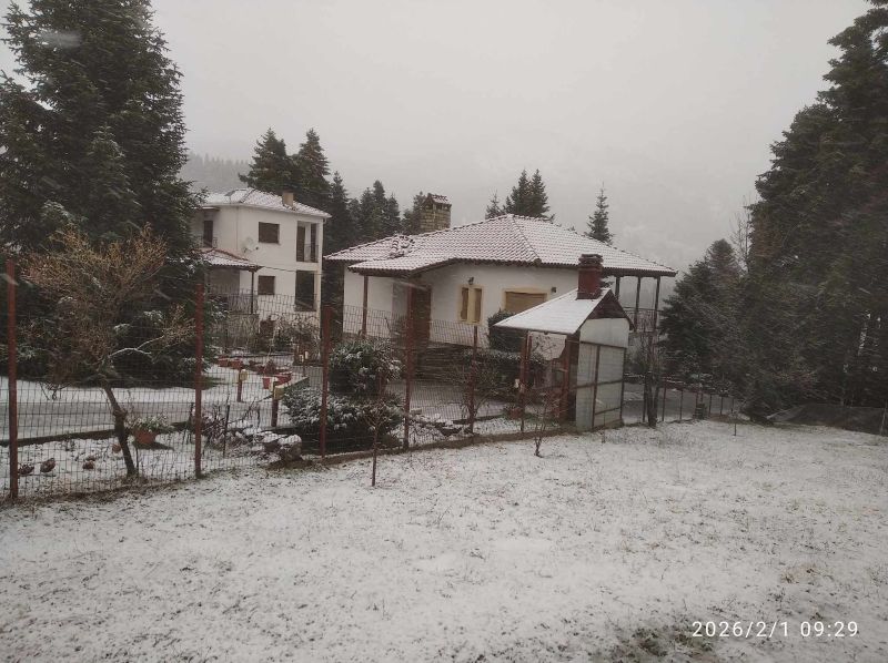 Στην Ελάτη για την ώρα δεν έχει ακόμα χιόνι, αλλά λίγα χιλιόμετρα παραπάνω, στη Βλάχα το έχει στρώσει και εξακολουθεί να χιονίζει.