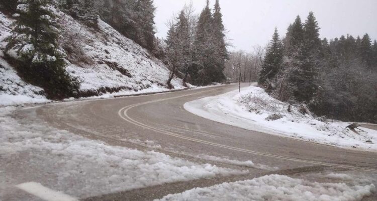 Στην Ελάτη για την ώρα δεν έχει ακόμα χιόνι, αλλά λίγα χιλιόμετρα παραπάνω, στη Βλάχα το έχει στρώσει και εξακολουθεί να χιονίζει.