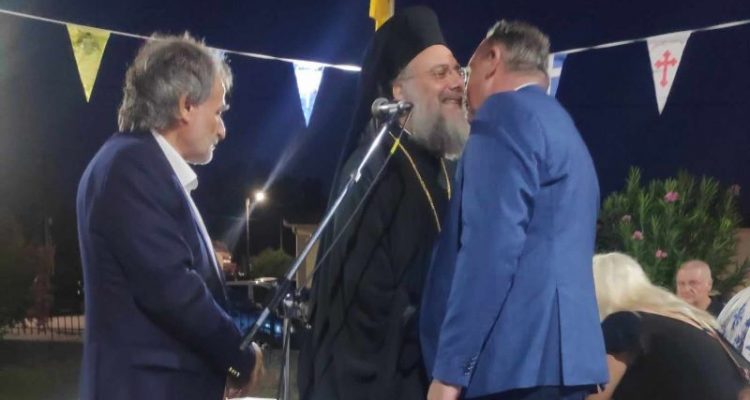 Μετά το τέλος του εσπερινού, περίμεναν στη σειρά οι αυτοδιοικητικοί για να ασπαστούν τον Μητροπολίτη κ. Χρυσόστομο και να λάβουν την ευλογία του. Μετά τον Θοδωρή Χήρα ..σε αναμονή και ο Ντίνος Μπάρδας.