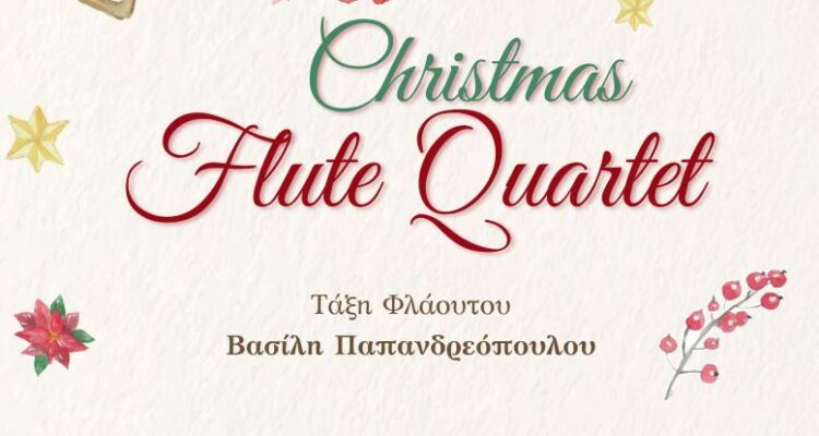 Η εκδήλωση είναι αφιερωμένη αποκλειστικά σε χριστουγεννιάτικες μελωδίες, μεταφέροντας τη μαγεία των ημερών μέσα από τον αιθέριο ήχο του φλάουτου. Το κουαρτέτο που θα μας ταξιδέψει μουσικά αποτελείται από τους Βασίλη Παπανδρεόπουλο, Εύη Κομπούρα, Βιργινία Σχορετσανίτη, Ευσταθία Νάκου.