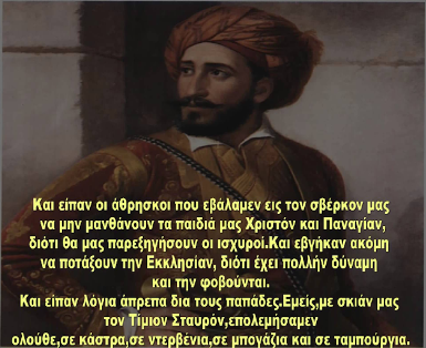 Eπειδή, “Όταν μου πειράζουν την πατρίδα μου και θρησκεία μου, θα μιλήσω, θα ‘νεργήσω κι ό,τι θέλουν ας μου κάμουν”, κατά τον πατριδοφύλακα στρατηγό Μακρυγιάννη.