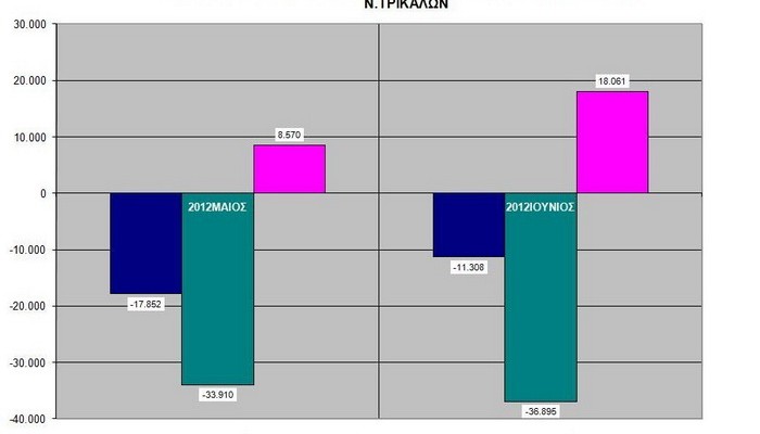 Η αποτύπωση του εκλογικού στίγματος στο νομό Τρικάλων εμφανίζει ένα νέο αναφυόμενο δικομματισμό με βασικό χρώμα το μπλέ και δεύτερο χρώμα … το ροζ.