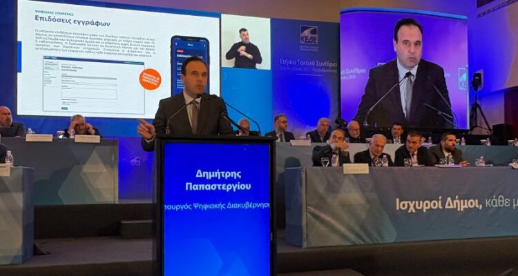 «Στην Κυβέρνηση υπάρχουν άνθρωποι οι οποίοι όχι απλά αγαπάμε την αυτοδιοίκηση, αλλά την έχουμε πολύ ψηλά στην ατζέντα. Με εμπιστοσύνη προχωρούμε όλοι μαζί για να περάσει το σύνολο της τοπικής αυτοδιοίκησης στην ψηφιακή εποχή, για να βελτιώσουμε την καθημερινότητα των πολιτών, να δημιουργήσουμε νέες ευκαιρίες περιφερειακής ανάπτυξης», υπογράμμισε ο Υπουργός Ψηφιακής Διακυβέρνησης, Δημήτρης Παπαστεργίου στο Ετήσιο Τακτικό Συνέδριο της Κεντρικής Ένωσης Δήμων Ελλάδας (ΚΕΔΕ) στην Αλεξανδρούπολη παρουσιάζοντας τον σχεδιασμό του Υπουργείου για την ψηφιακή μετάβαση της Τοπικής Αυτοδιοίκησης.