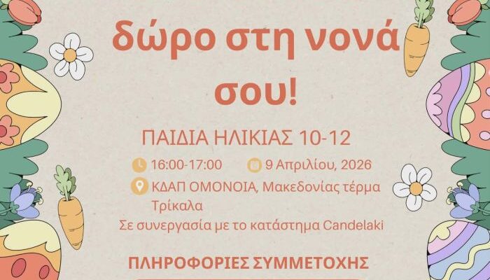 Το Δημοτικό Συμβούλιο Νέων του Δήμου Τρικκαίων σας προσκαλεί σε ένα δημιουργικό πασχαλινό εργαστήρι!