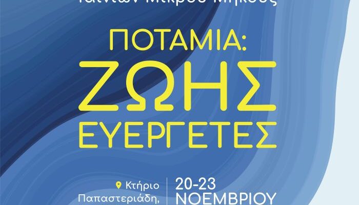 Το Ελληνικό Δίκτυο Δήμων με Ποτάμια, σε συνεργασία με το Δήμο Τρικκαίων και με χρηματοδότηση του Πράσινου Ταμείου, διοργανώνει από τις 20 έως 23 Νοεμβρίου 2025 στην πόλη των Τρικάλων, κτήριο Παπαστεριάδη, Ευρωπαϊκό Φεστιβάλ Κινηματογράφου Ταινιών Μικρού Μήκους με θέμα: ‘Υδάτινος Κόσμος’, «Ποτάμια: Ζωής Ευεργέτες».