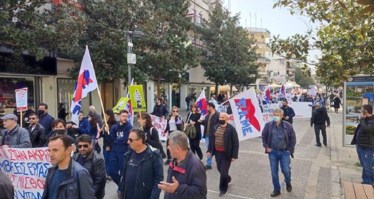 Από το βήμα της απεργιακής κινητοποίησης απηύθυναν χαιρετισμούς εκπρόσωποι συνδικαλιστικών φορέων και σωματείων, ενώ αμέσως μετά σχηματίστηκε πομπή διαμαρτυρίας με σημαίες, πανό και συνθήματα, η οποία διαμέσω της Στρ. Σαράφη, διέσχισε κεντρικούς δρόμους της πόλης.