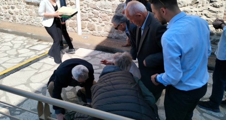 Ο λόγος για την πρώην Δημοτική Σύμβουλο Τρικκαίων και Διευθύντρια της Δευτεροβάθμιας εκπαίδευσης Τρικάλων Βάσω Κάκλα, η οποία προσερχόμενη στο χώρο είχε ένα δυσάρεστο περιστατικό, εξαιτίας πτώσης από ένα καλώδιο.
