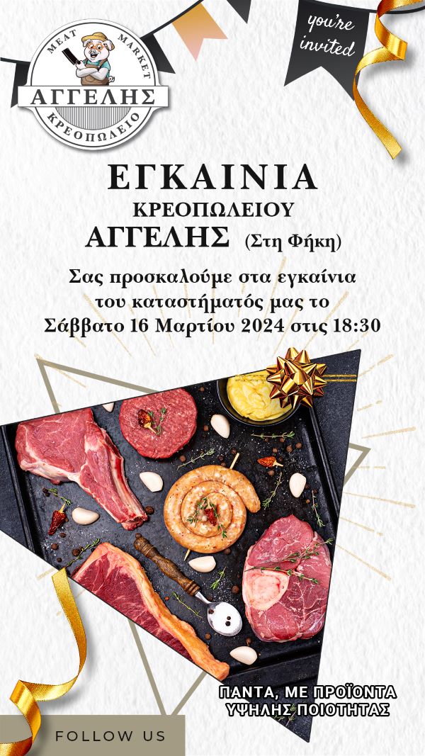 Εγκαίνια κρεοπωλείου ΑΓΓΕΛΗΣ στην Φήκη 15/03/2024 Τοπικά - Θεσσαλικά Δημήτρης Παδιός Το νέο κρεοπωλείο ΑΓΓΕΛΗΣ στην Φήκη, συνδυάζει τη φιλοσοφία του παραδοσιακού κρεοπωλείου της γειτονιάς, με τη σύγχρονη ματιά και μας προσκαλεί στα εγκαίνιά του, το Σάββατο 16 Μαρτίου 2024 και ώρα 18:30 Ειδήσεις σήμερα Η σημασία του νηπιαγωγείου: γιατί τα πρώτα σχολικά χρόνια καθορίζουν ολόκληρη τη ζωή του παιδιούΣύγκληση Έκτακτου ΠΕ.Σ.Ο.Π.Π. της Π.Ε. Τρικάλων Περιφέρειας Θεσσαλίας για την κακοκαιρίαΠεριφέρειας Θεσσαλίας: Κακοκαιρία προβλέπεται την Κυριακή Δείτε όλες τις τελευταίες Ειδήσεις από την Ελλάδα και τον Κόσμο, τη στιγμή που συμβαίνουν, στο trikalain.gr