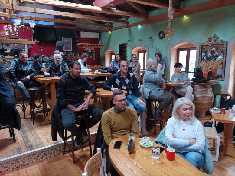 Στην εκδήλωση μίλησαν ο Βαγγέλης Γαλάνης, ψυχολόγος- ψυχοθεραπευτής, εκπ. μέλος της βορειοελλαδίτικης ψυχαναλυτικής εταιρείας, διδάσκων στο Πανεπιστήμιο Δυτικής Μακεδονίας και ο Γιώργος Νικολαΐδης, ψυχίατρος, Διευθυντής της Διεύθυνσης Ψυχικής Υγείας και Κοινωνικής Πρόνοιας του Ινστιτούτου Υγείας του Παιδιού και παραβρέθηκαν εκπρόσωποι των εργαζομένων, της νεολαίας και των εκπαιδευτικών, συμμετέχοντας ενεργά στην εκδήλωση και τη συζήτηση που ακολούθησε.