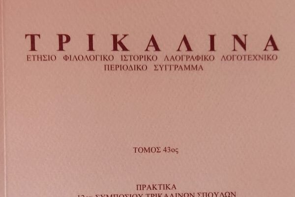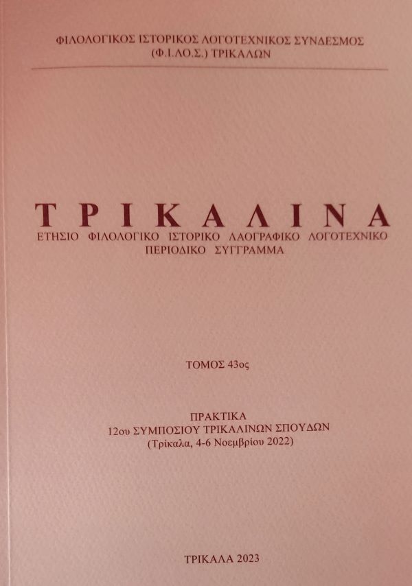 Εκδόθηκε και κυκλοφορεί ήδη ο 43ος τόμος (2023) του ετησίου περιοδικού επιστημονικού συγγράμματος «Τρικαλινά», το οποίο εκδίδει ανελλιπώς κάθε χρόνο από το 1981 ο Φιλολογικός Ιστορικός Λογοτεχνικός Σύνδεσμος (Φ.Ι.ΛΟ.Σ.) Τρικάλων, και διατίθεται από τα βιβλιοπωλεία. Ο νέος τόμος περιλαμβάνει τα πρακτικά του 12ου Συμποσίου Τρικαλινών Σπουδών, που διοργανώθηκε 4-6 Νοεμβρίου 2022, και αφορούν σε ενδιαφέροντα θέματα ιστορικά, αρχαιολογικά και λαογραφικά. Την επιμέλεια του τόμου είχαν οι διευθυντές συντάξεως Δημήτριος Αγορίτσας, διδάκτωρ ιστορίας, και Ναυσικά Μουλά, φιλόλογος M.Ed, πρόεδρος του Φ.Ι.ΛΟ.Σ. Ειδικότερα ο τόμος αυτός περιλαμβάνει: