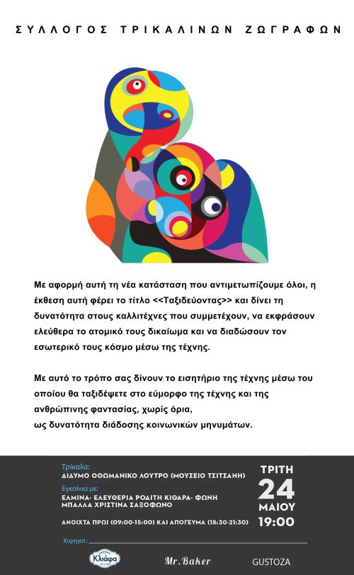 Με αφορμή αυτή τη νέα κατάσταση που αντιμετωπίζουμε όλοι, η έκθεση αυτή φέρει το τίτλο <<Ταξιδεύοντας>> και δίνει τη δυνατότητα στους καλλιτέχνες που συμμετέχουν, να εκφράσουν ελεύθερα το ατομικό τους δικαίωμα και να διαδώσουν τον εσωτερικό τους κόσμο μέσω της τέχνης.