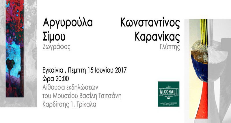 Την Πέμπτη 15 Ιουνίου 2017 και ώρα 20.00 θα γίνουν τα εγκαίνια της Έκθεσης Ζωγραφικής – Γλυπτικής της Αργυρούλας Σίμου και του Κωνσταντίνου Καρανίκα στην αίθουσα εκδηλώσεων του Μουσείου Βασίλη Τσιτσάνη στα Τρίκαλα.