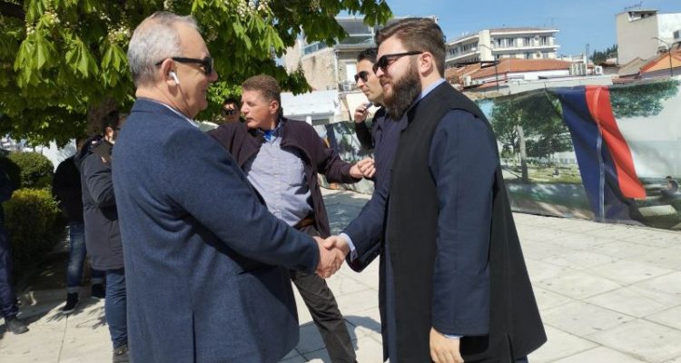 Μια ενδιαφέρουσα συνάντηση μεταξύ του υποψηφίου Βουλευτή Τρικάλων του ΠΑΣΟΚ-Κινήματος Αλλαγής Σωτήρη Μπλέτσα και του Πρωτοσύγκελου της Ιεράς Μητρόπολης Τρίκκης, Γαρδικίου και Πύλης π. Αλεξίου Κανίνα, κατέγραψε σήμερα ο φακός του trikalaIN.gr, πέριξ της υπό ανάπλαση κεντρικής πλατείας Τρικάλων.