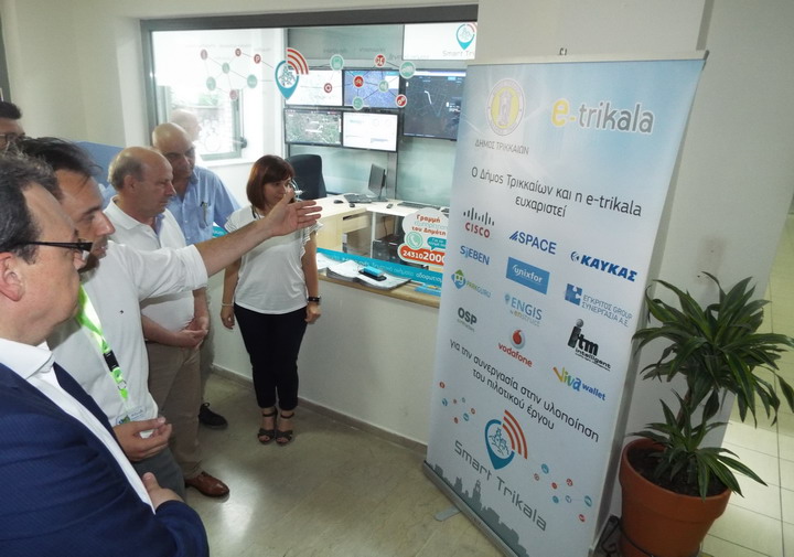 Ο Δήμος Τρικκαίων παρουσίασε στους φορείς της Αυτοδιοίκησης (Δημάρχους, στελέχη εταιρειών, στελέχη φορέων) το όλο σύστημα που λειτουργεί με την εποπτεία μέσω του controlroom που υπάρχει στο Δημαρχείο. Όλες οι νέες τεχνολογικές εφαρμογές κεφαλαιοποιούνται προς όφελος των πολιτών σε μια σειρά τομέων της καθημερινότητας: διαχείριση στόλου απορριμμάτων, μείωση δαπανών φωτισμού, διαχείριση περιβαλλοντικής πληροφορίας, στάθμευση, ενίσχυση ισχύος ασύρματου δικτύου, ψηφιακές πλατφόρμες κ.α.