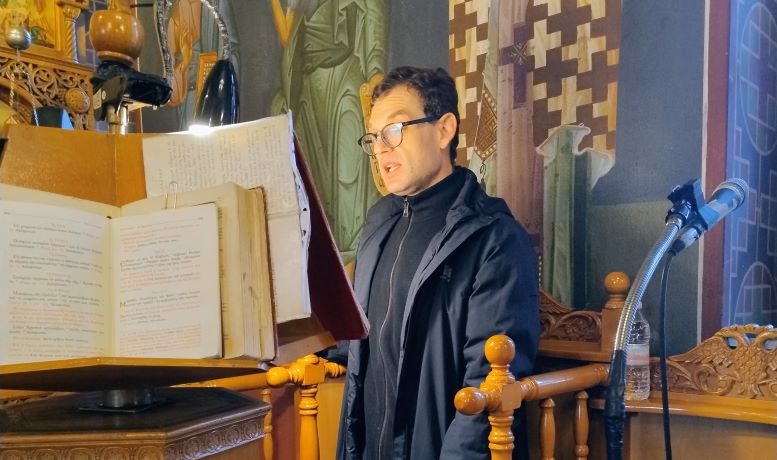 Στο αναλόγιο έψαλε ο Ευάγγελος Λαγός, Ιεροψάλτης της Ιεράς Μονής Πανορμίτου