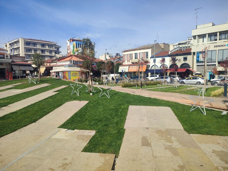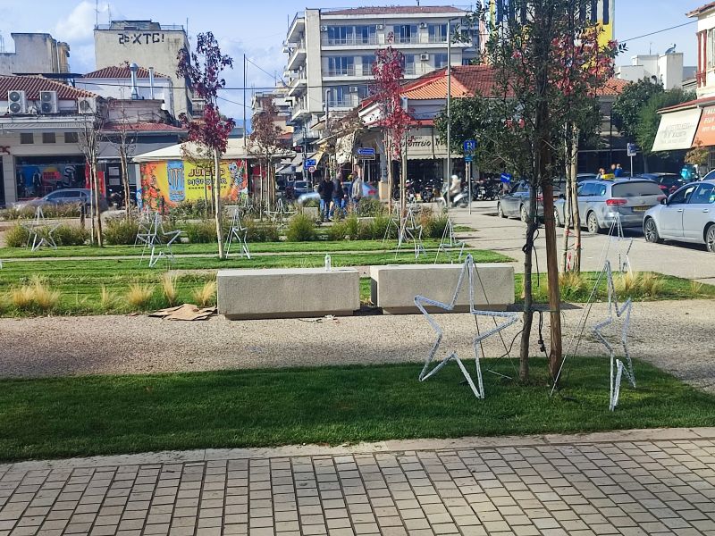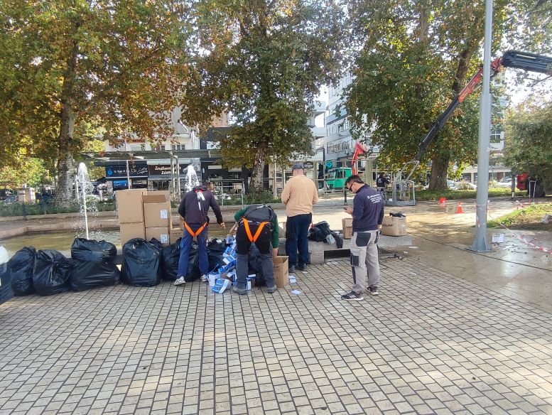 Οργασμός εργασιών σήμερα το πρωί στην κεντρική πλατεία των Τρικάλων.