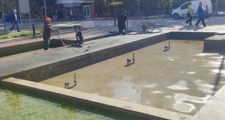 Οργασμός εργασιών σήμερα το πρωί στην κεντρική πλατεία των Τρικάλων.