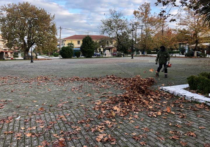 Παρών και ο αρμόδιος Αντιδήμαρχος Βασίλης Κρανιάς, ο οποίος επέβλεψε τις εργασίες καθαρισμού από φύλλα και σκουπίδια από το προσωπικό της καθαριότητας και από σήμερα η πλατεία του χωριού παραδόθηκε πεντακάθαρη στους κατοίκους.