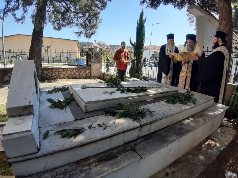 Επιμνημόσυνη δέση τέλεσε επίσης στον τάφο του μακαριστού πρώην Τρίκκης κυρού Αλεξίου, ενώ επισκέφθηκε επίσης και τα κοιμητήρια Αγίων Κωνσταντίνου και Ελένης και Αγίας Μονής, όπου τέλεσε τρισάγιο υπέρ αναπαύσεως των ψυχών των κεκοιμημένων αδελφών μας.