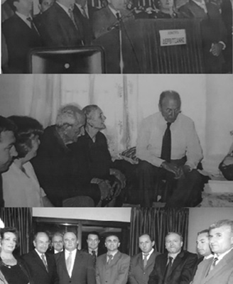 Φώτο πάνω: στη Δερβιτσιάνη. Μέση: ο κ. Στεφανόπουλος στην οικεία της γιαγιάς του στη Δρόβιανη. Κάτω: ο Πρόεδρος Στεφανόπουλος με αντιπροσωπεία της ΟΜΟΝΟΙΑΣ
