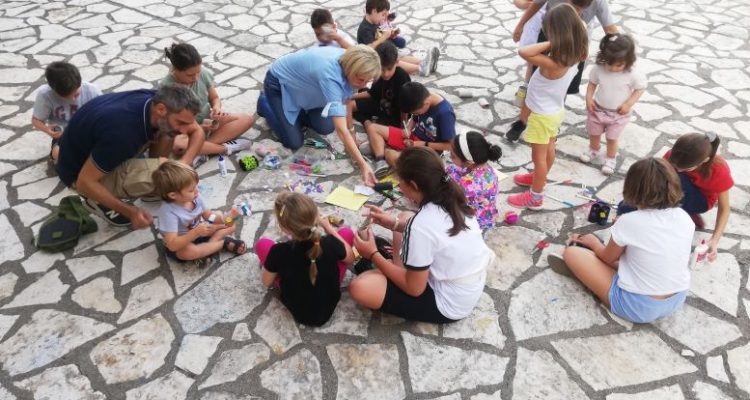 Σκοπός του εργαστηρίου ήταν να καλλιεργήσουν τα παιδιά δεξιότητες λεπτής κινητικότητας και να πειραματιστούν με διάφορα υλικά από τη φύση, τα οποία έγιναν αντικείμενα δημιουργίας.