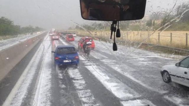 Συγκεκριμένα στο 155ο χιλιόμετρο ακινητοποιήθηκαν οχήματα, ανάμεσά τους και νταλίκες, εξαιτίας της κακοκαιρίας και η Τροχαία προσπαθούσε να προειδοποιήσει τους οδηγούς που θα χρησιμοποιούσαν την οδό. Χαρακτηριστικά το χαλάζι στρώθηκε στο οδόστρωμα καθιστώντας δύσκολη και επικίνδυνη την κίνηση σε αυτό!