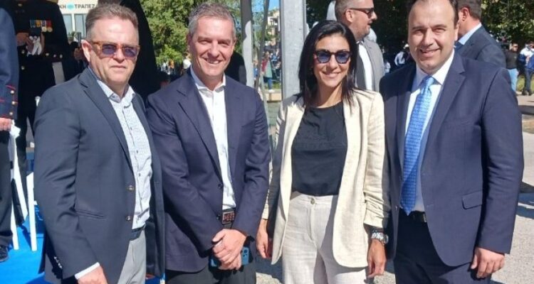 Με τον Πρόεδρο του Επιμελητηρίου Τρικάλων Κων/νο Παπαευθυμίου και τα νέα μέλη της διοίκησης Χρήστο Ζαραμπούκα και Βάσω Κατσίκη, φωτογραφήθηκε ο Υπουργός Ψηφιακής Διακυβέρνησης Δημήτρης Παπαστεργίου, στο περιθώριο της παρέλασης για την 28η Οκτωβρίου στα Τρίκαλα.