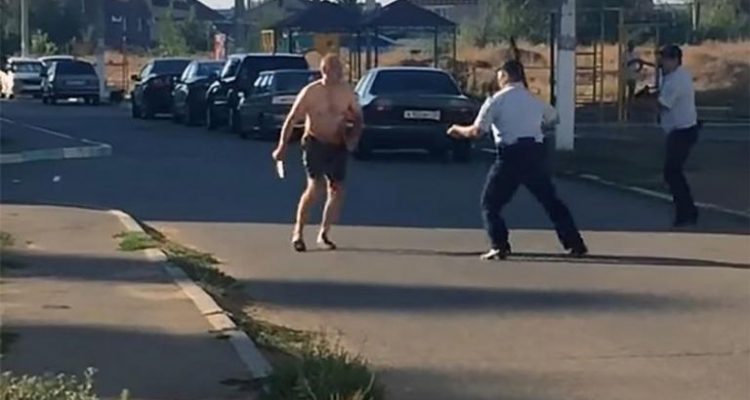 Στο βίντεο φαίνεται να απειλεί αστυνομικούς με μαχαίρι και να αρνείται να παραδοθεί. Δέχτηκε τα πυρά των αστυνομικών και μεταφέρθηκε σε νοσοκομείο στο Astrakhan, στη Ρωσία, όπου και πέθανε.