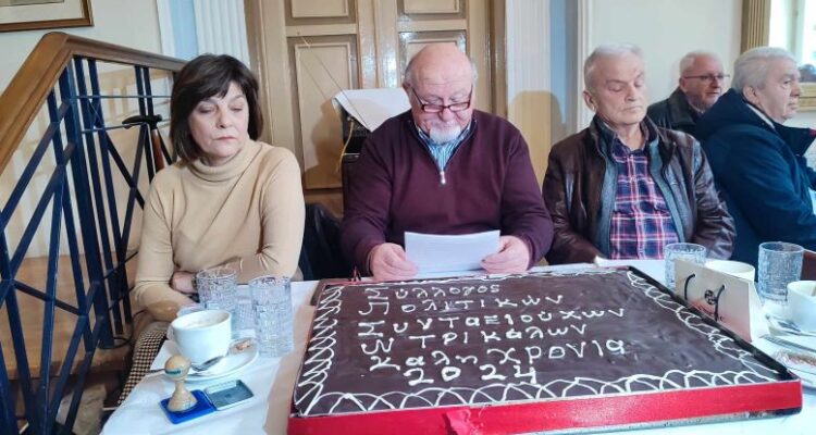 Με επιτυχία πραγματοποιήθηκε το πρωί του Σαββάτου στην αίθουσα «Αίγλη» του ξενοδοχείου Πανελλήνιον, η κοπή της πρωτοχρονιάτικης πίτας του Συλλόγου Πολιτικών Συνταξιούχων νομού Τρικάλων.