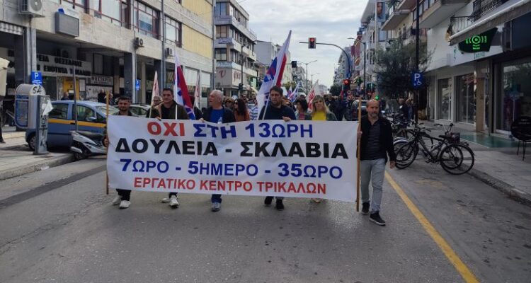 Οπως κατέγραψε το trikalaIN.gr, ,οι εργαζόμενοι που συμμετείχαν στην απεργιακή κινητοποίηση, κάνουν λόγο για εργασιακό μεσαίωνα, με 13 ώρες εργασίας ημερησίως, ζητώντας την άμεση απόσυρση του.